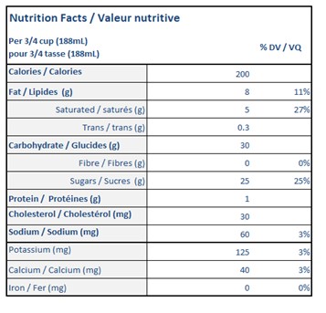 Nutritional Facts for 1.65L RASPBERRY CHEESECAKE ISLAND FARMS