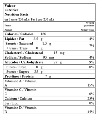 Nutritional Facts for 473ML STRAWBERRY MILK SEALTEST